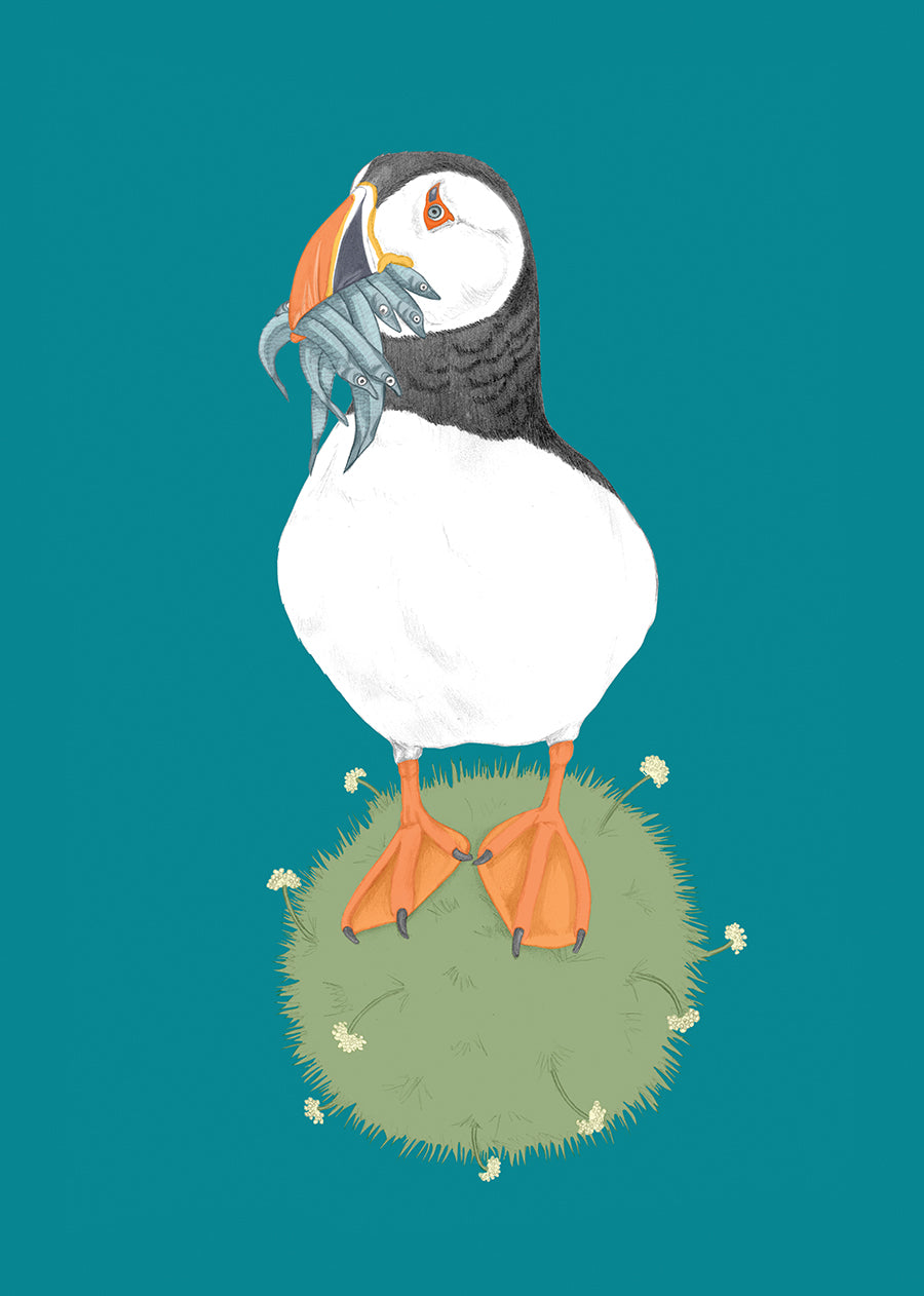 Puffins are such strange little creatures. The way they walk always makes me smile. I wanted to add this great little fisherman to my collection, on his own little island.