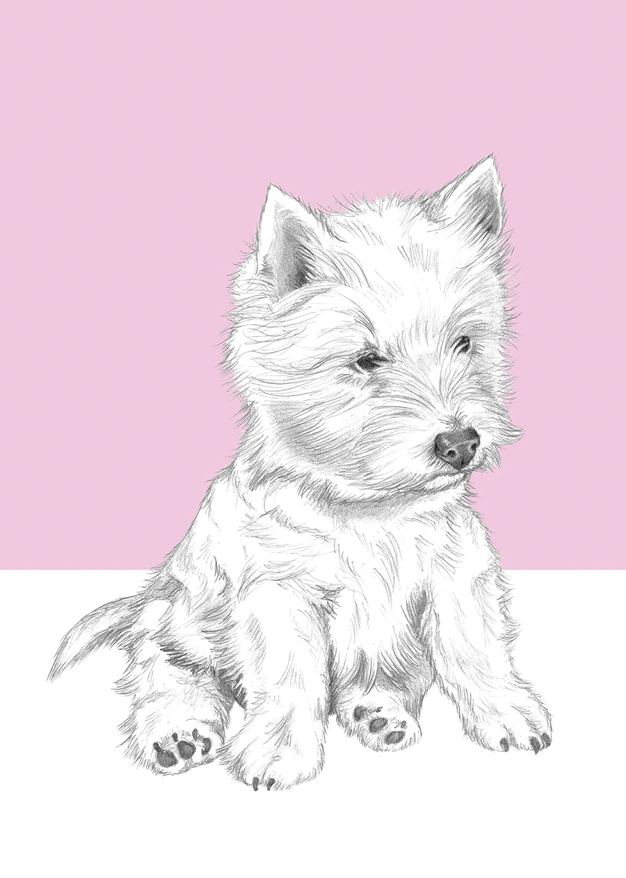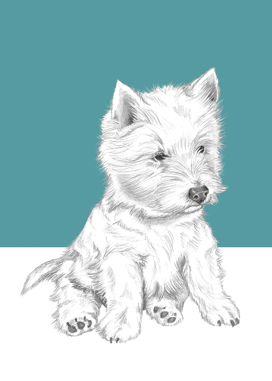 I made Westy as a part of a dogs series. Every time I'm on a market, there is someone that asks me, do you have "this" kind of dog. It made me want to draw as many dogs as I could. I still have quite a long list to go through, and i'm working on them with much joy!
